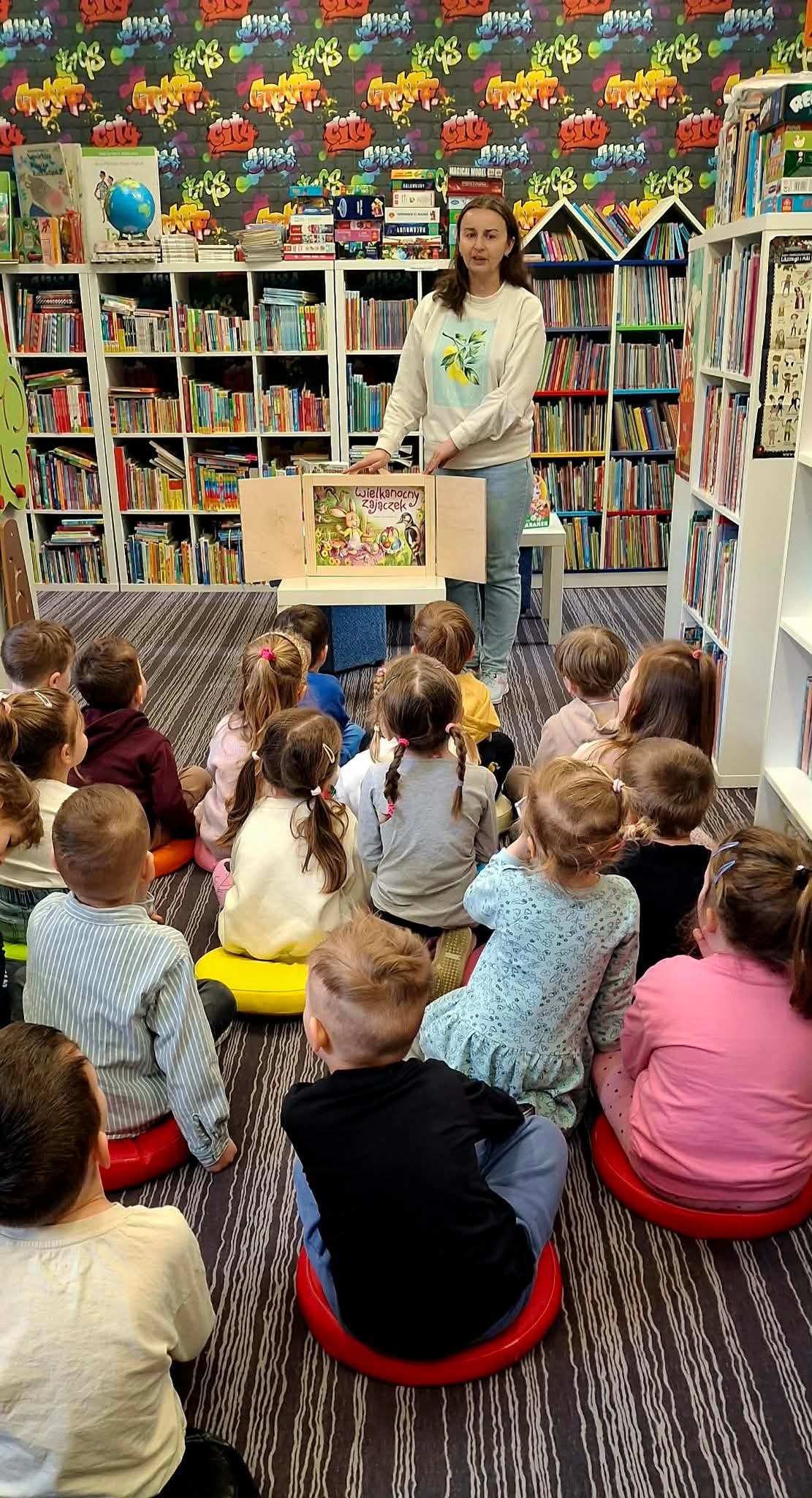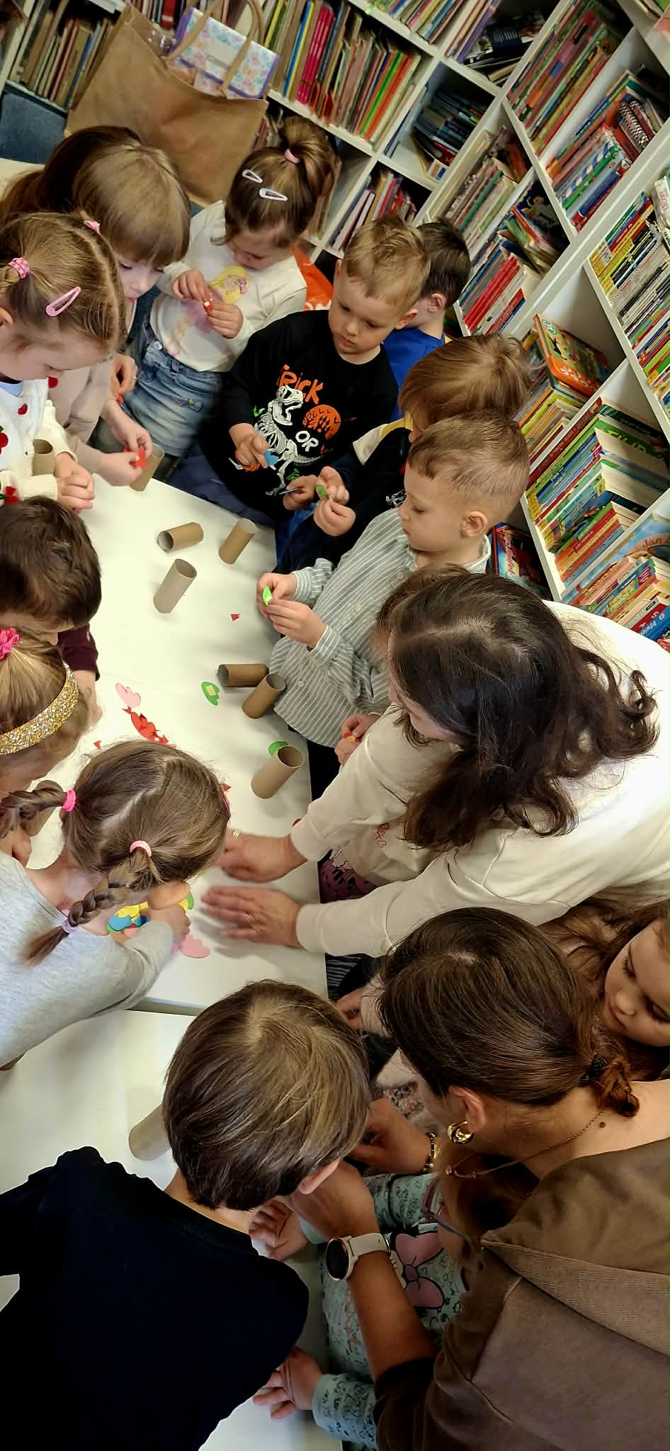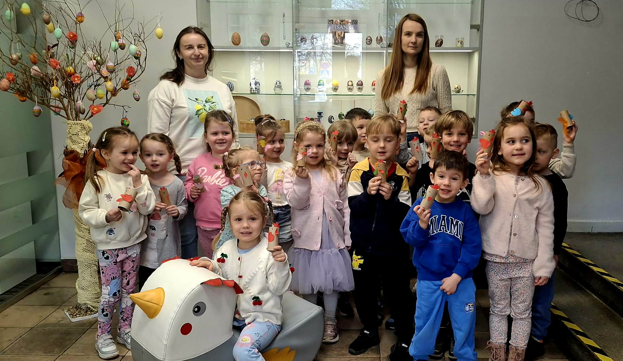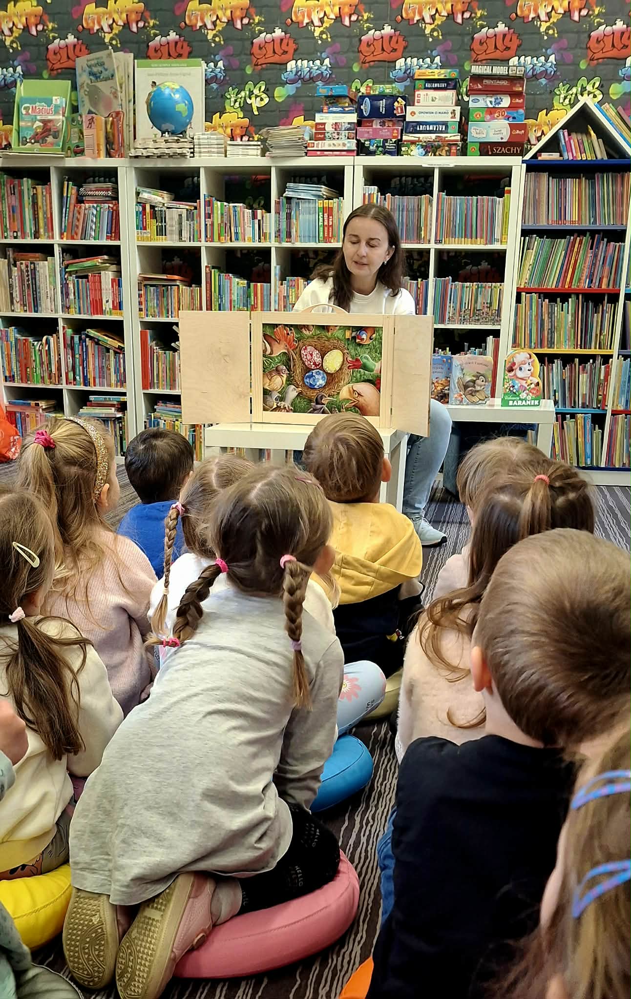Podczas dzisiejszych zajęć edukacyjnych w Miejsko-Gminnej Bibliotece Publicznej w Wieruszowie dzieci z grupy Motylki i Misie z Przedszkola nr 1 w Wieruszowie pogłębiały swoja wiedzę na temat tradycji wielkanocnych. Z rozmów wynikło, że dzieci bardzo chętnie uczestniczą w tworzeniu wielkanocnych palm i koszyczków. Znają zwyczaj polewania się wodą, a na koniec zajęć wykonały śliczne kurki i koguciki.