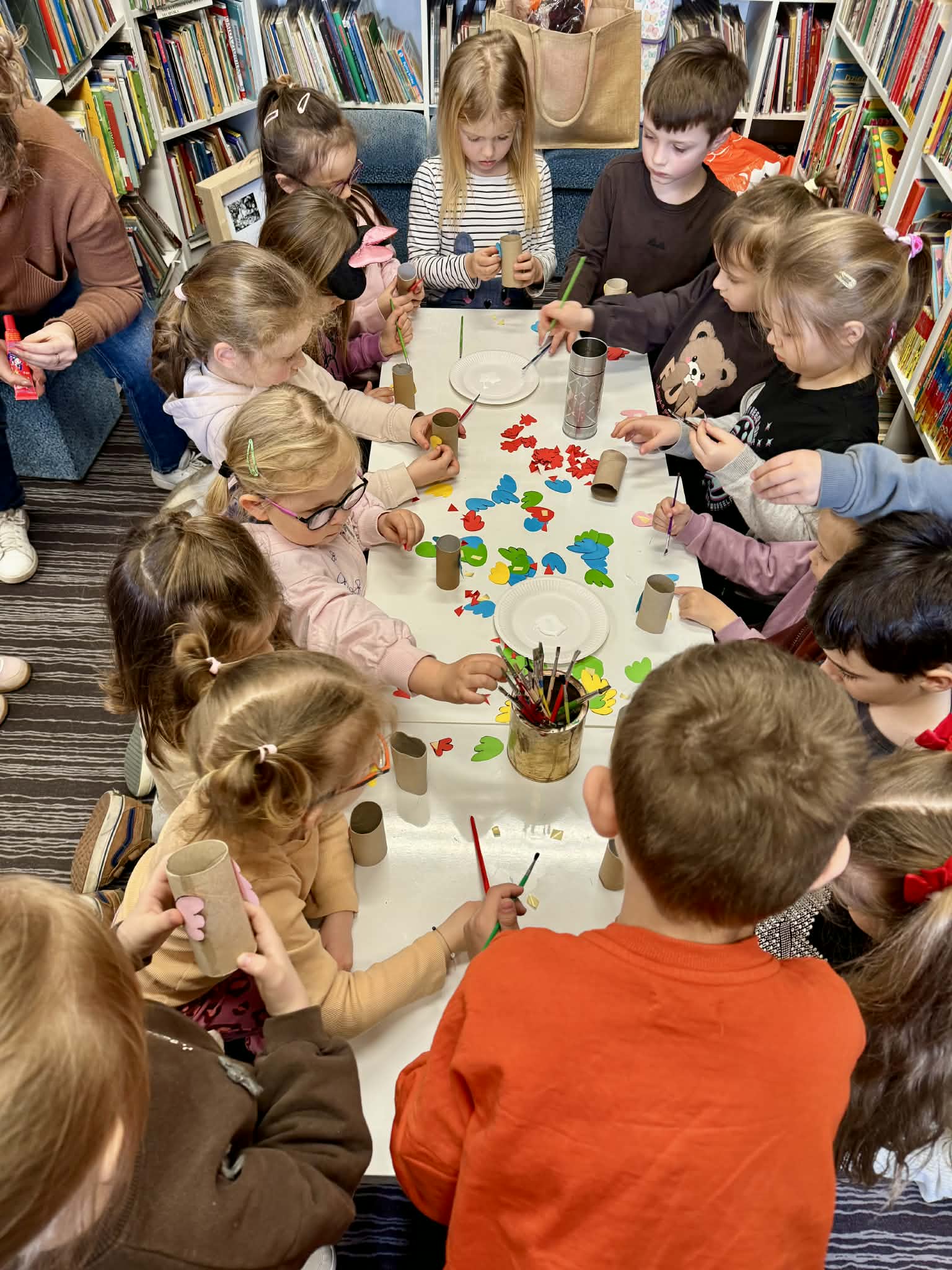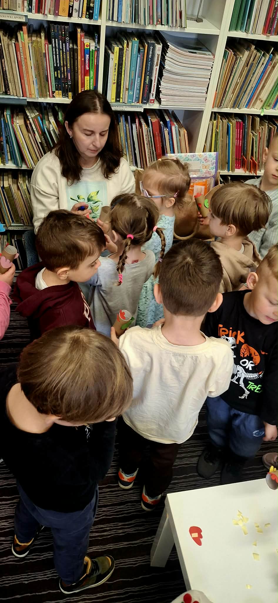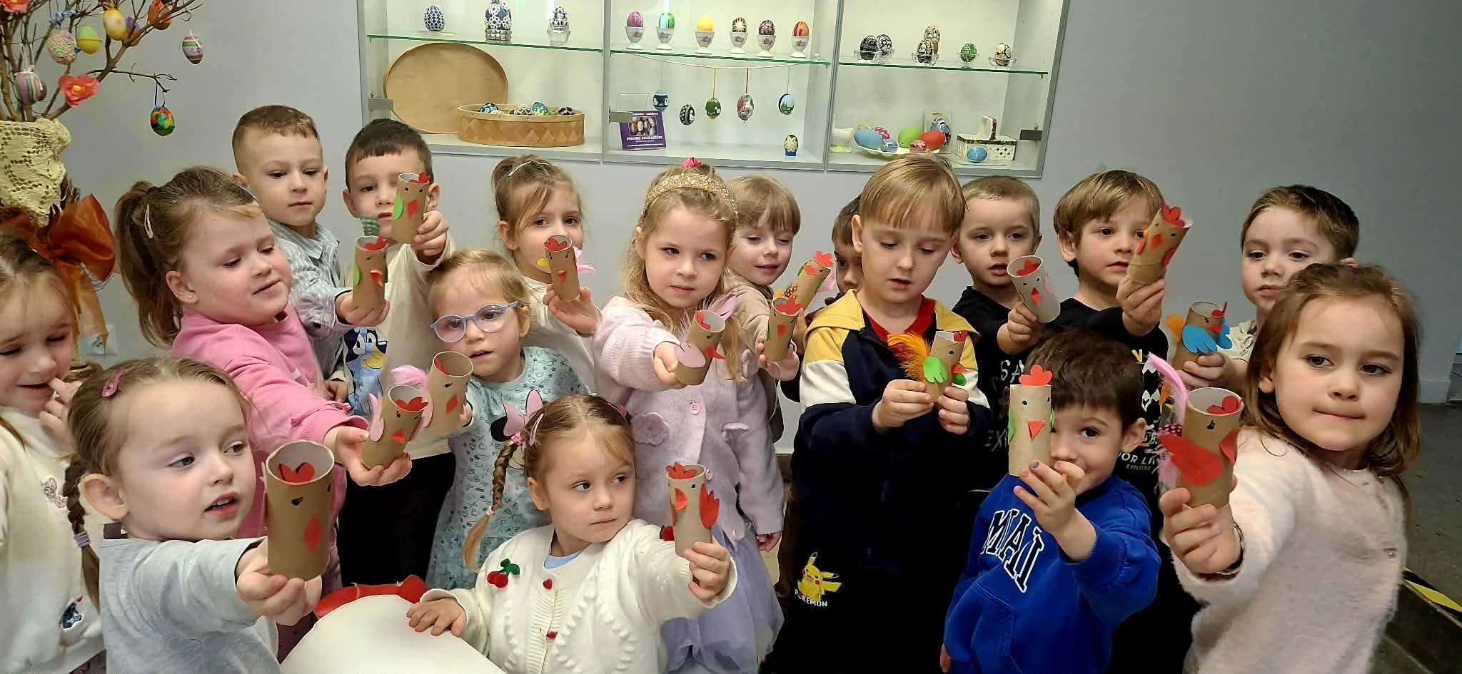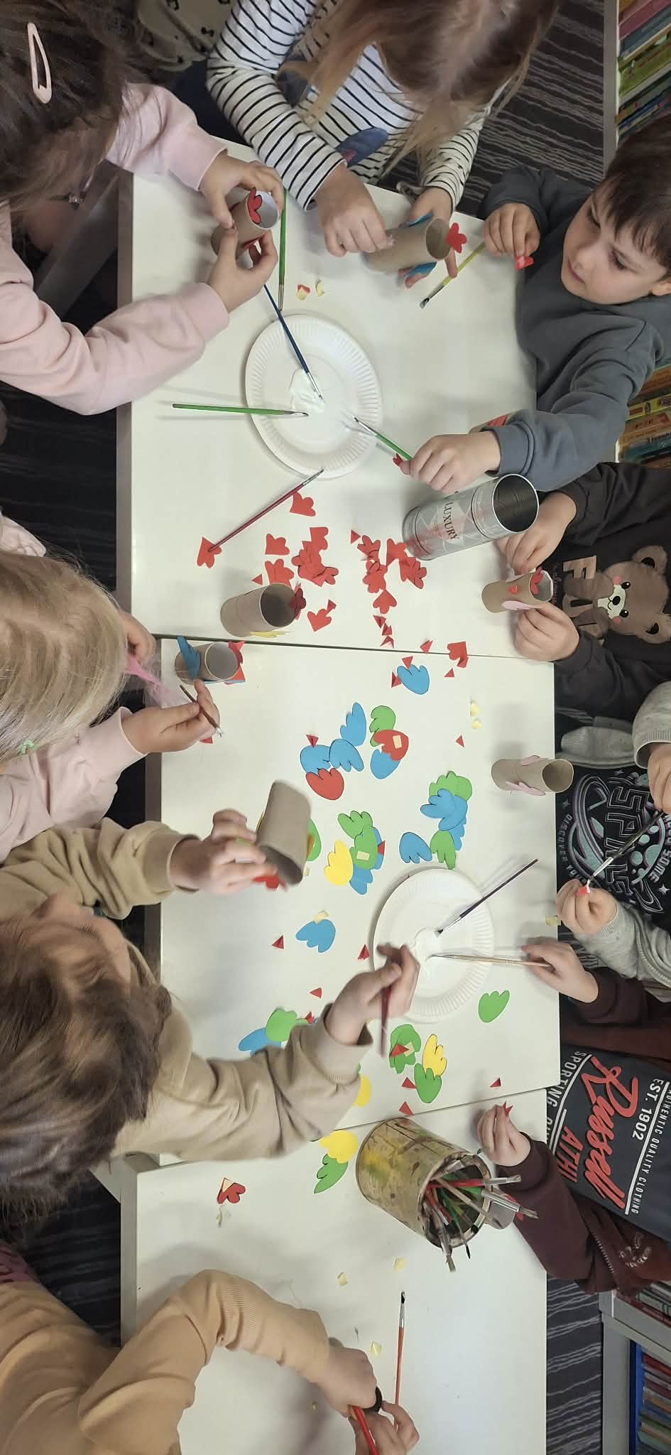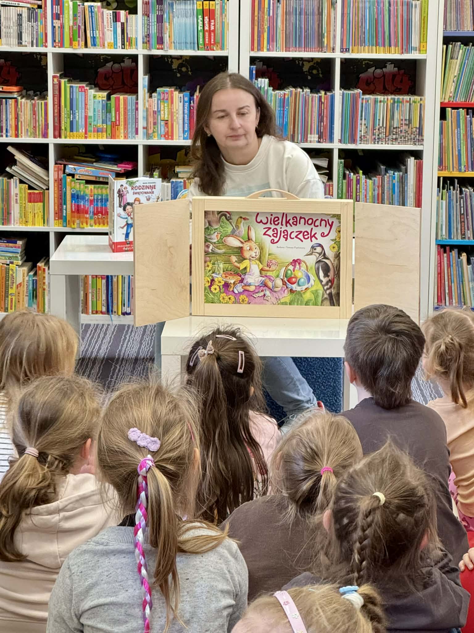 Podczas dzisiejszych zajęć edukacyjnych w Miejsko-Gminnej Bibliotece Publicznej w Wieruszowie dzieci z grupy Motylki i Misie z Przedszkola nr 1 w Wieruszowie pogłębiały swoja wiedzę na temat tradycji wielkanocnych. Z rozmów wynikło, że dzieci bardzo chętnie uczestniczą w tworzeniu wielkanocnych palm i koszyczków. Znają zwyczaj polewania się wodą, a na koniec zajęć wykonały śliczne kurki i koguciki.