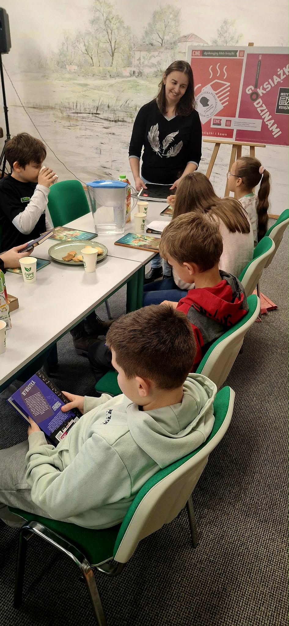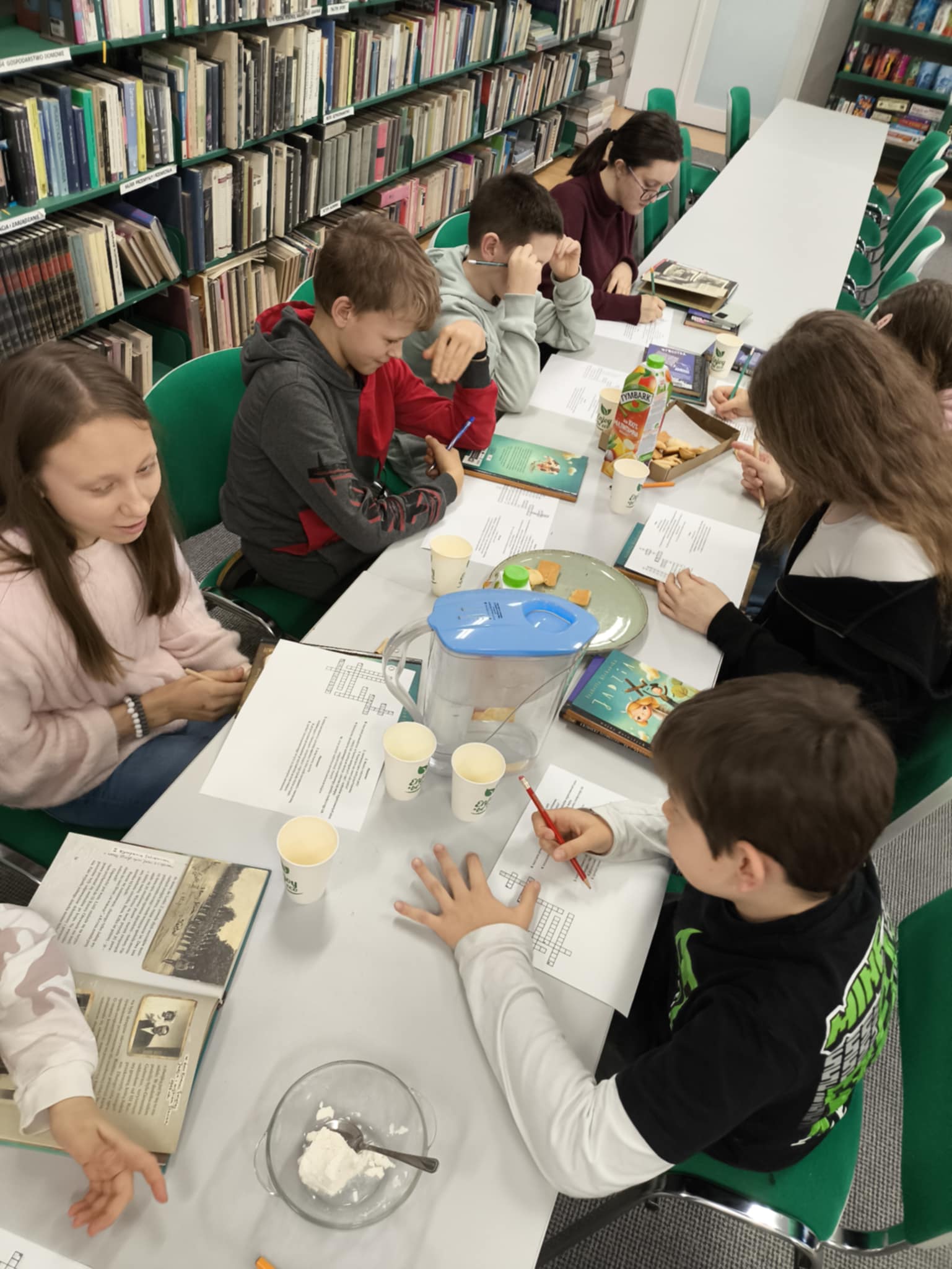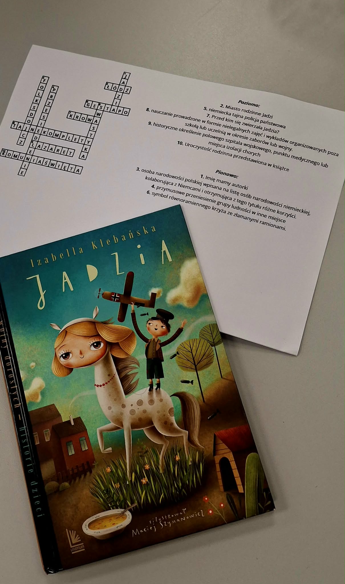 Wtorkowe popołudnie Dyskusyjny Klub Książki dla Dzieci spędził na rozmowie o książce, opartej na faktach pt. „Jadzia” Izabelli Klebańskiej. Autorka opowiada losy swojej mamy Jadzi, której beztroskę i poczucie bezpieczeństwa przerywa II wojna światowa. Czytając tą książkę poczuliśmy radość i ulgę z faktu, że nie musimy w dzisiejszych czasach przeżywać rozłąki z rodzicami, głodu, strachu i bezsilności. Tajne komplety dla bohaterki są spełnieniem marzeń a lekcje w szkole dziś to często dla uczniów przykry obowiązek. Dzięki tej historii mogliśmy sobie uświadomić jakie mamy szczęście żyjąc w wolnym kraju.