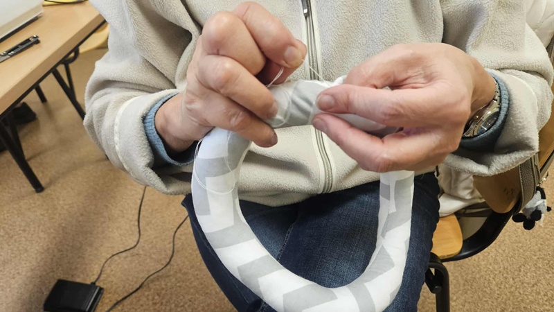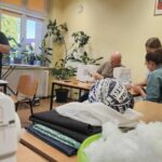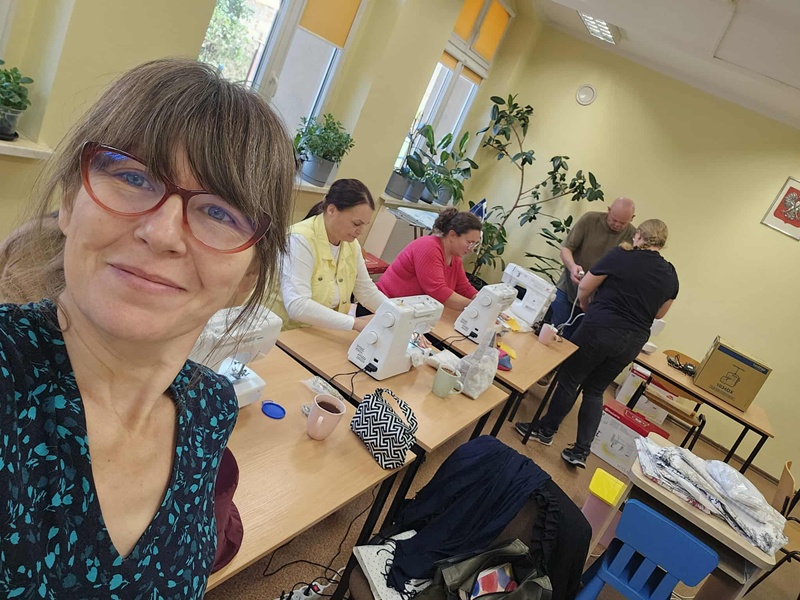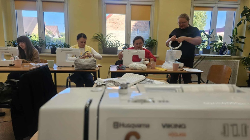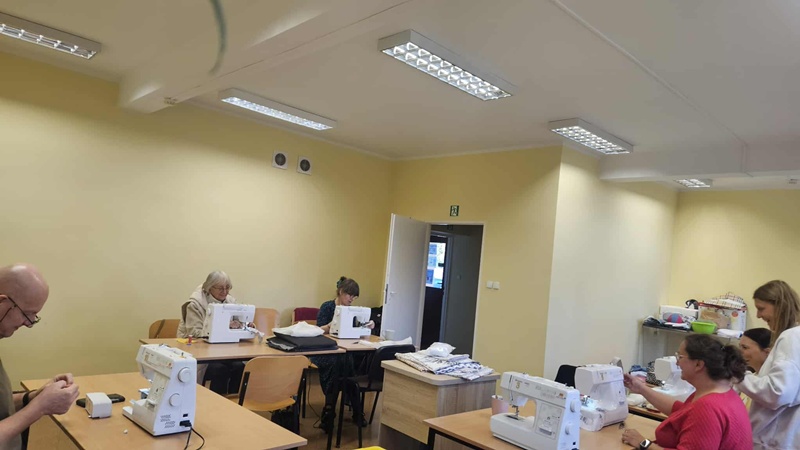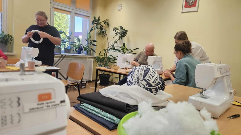24 września 2025 r. w Filii Bibliotecznej w Kuźnicy Skakawskiej odbyły się kolejne zajęcia z projektu „Patchworkowe inspiracje. Grupa osób pilnie uczy się szyć pod okiem krawcowej. Już widać kilka efektów. Uczestnikom idzie coraz lepiej. Mają dużo satysfakcji po samodzielnym uszyciu fajnych rzeczy.