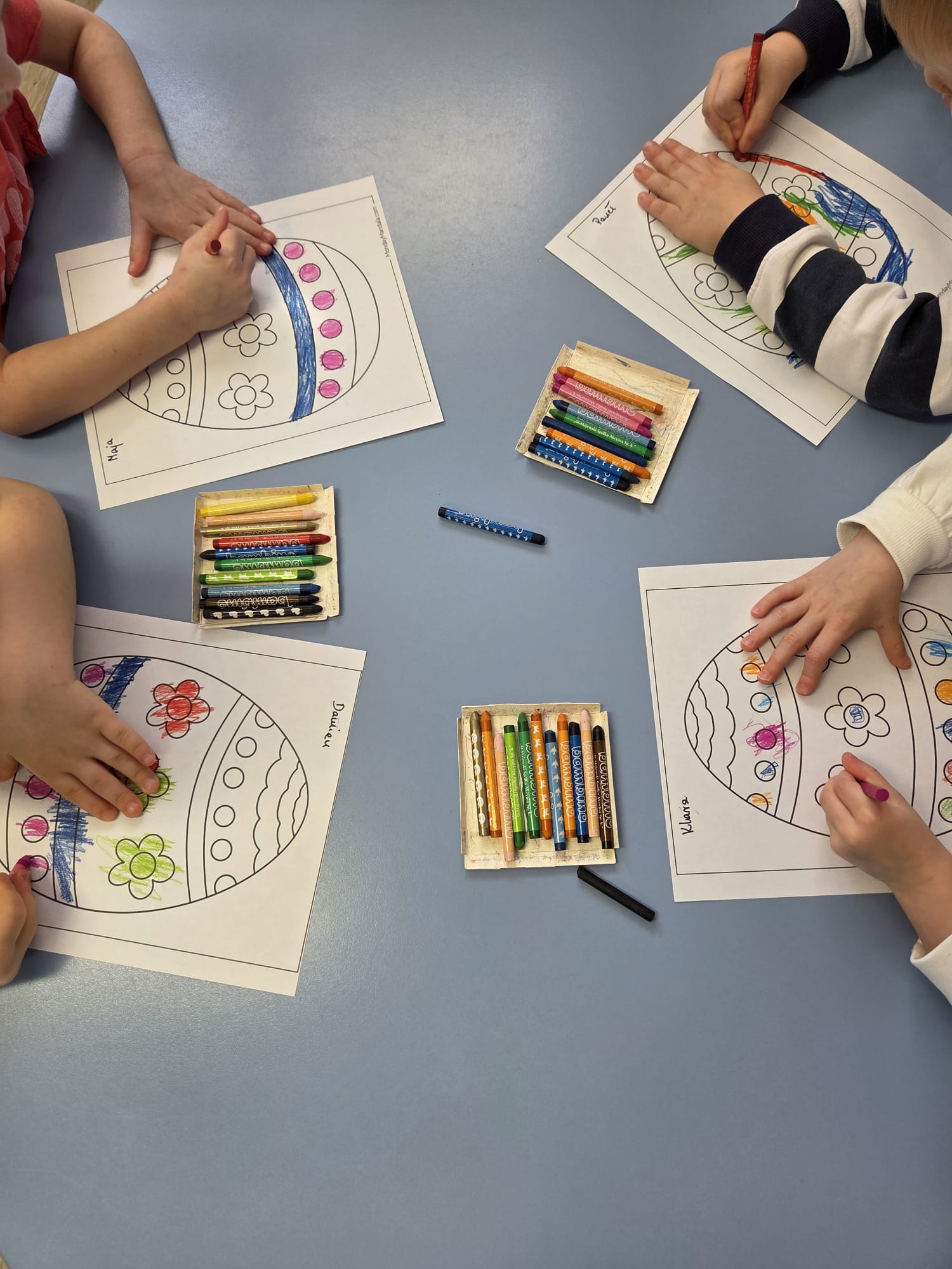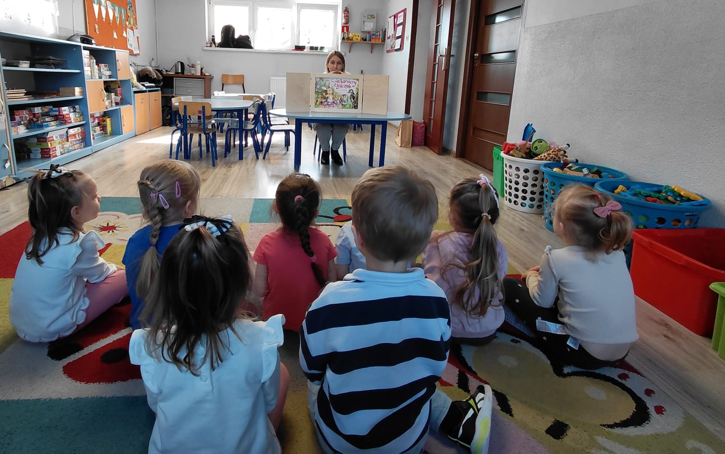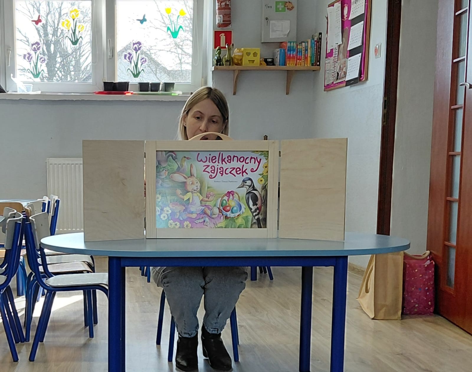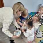 Dziś 1 kwietnia bibliotekarka Filii w Pieczyskach odwiedziła Żabki – grupę przedszkolaków ze Szkoły Podstawowej im. Królowej Jadwigi w Pieczyskach. Święta Wielkanocne są już tak blisko nas, że dzieci oczekują ich już z wielką niecierpliwością. Przede wszystkim czekają oczywiście na… zajączka :) Wielkanocny zajączek był dziś bohaterem czytanych bajek m.in. Urszuli Kozłowskiej oraz przedstawionego teatrzyku kamishibai. Historyjki te stały się wstępem do rozmowy o wielkanocnych tradycjach. W części warsztatowej nasi mali artyści ozdobili kolorowe zajączki oraz przepięknie pokolorowali pisanki. To był czas pełen uśmiechu, który wprowadził nas w radosny nastrój oczekiwania na święta. Dziękuję bardzo za wspólnie spędzone chwile i wszystkim życzę zdrowych, spokojnych i radosnych Świąt Wielkanocnych!