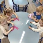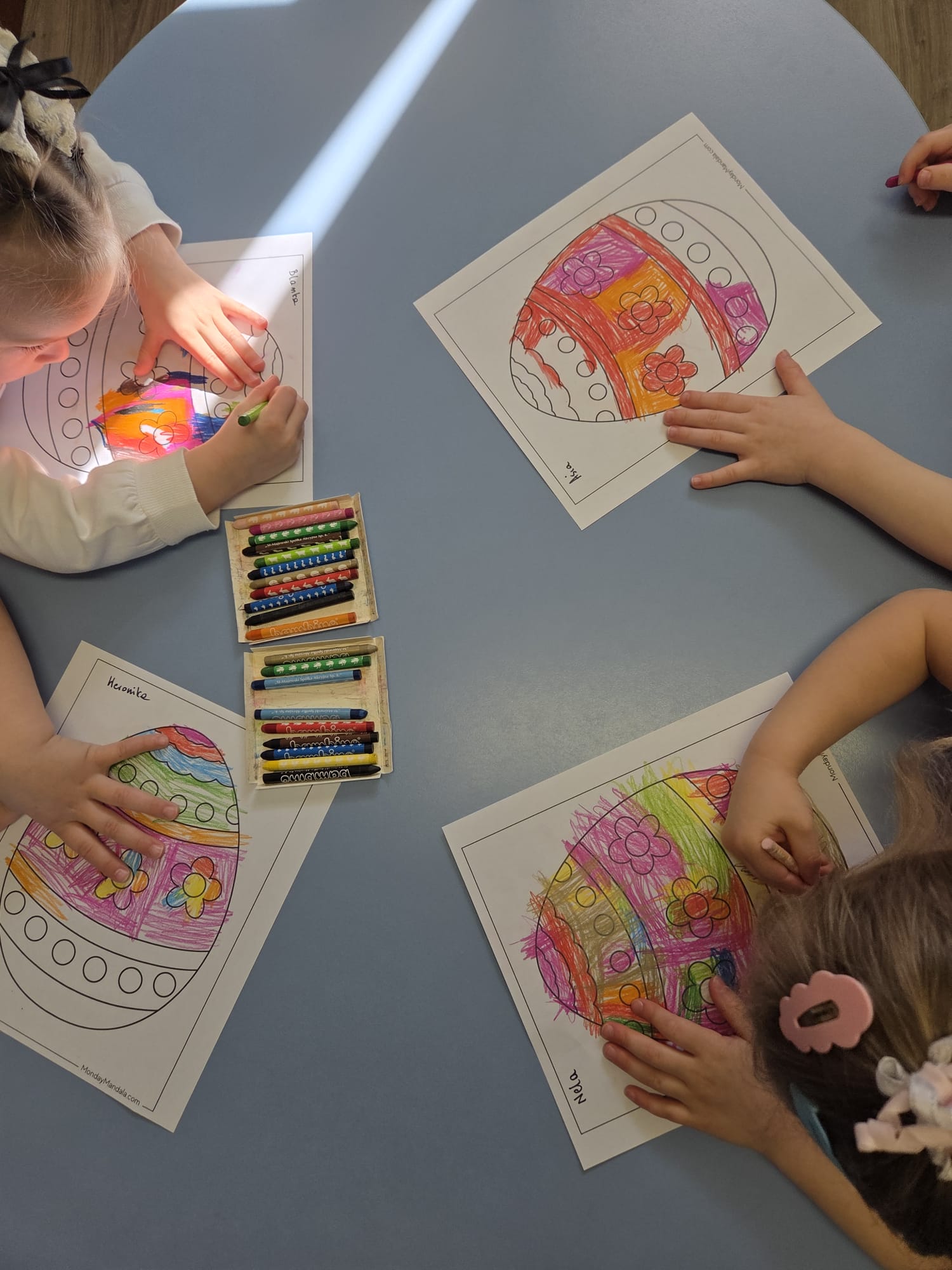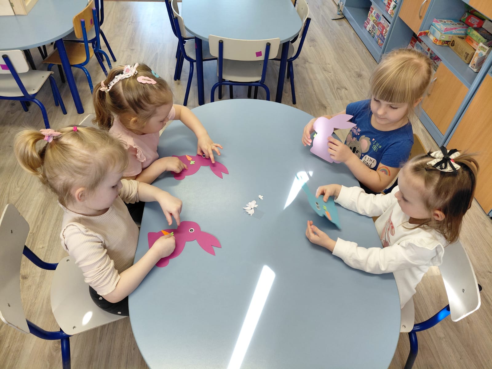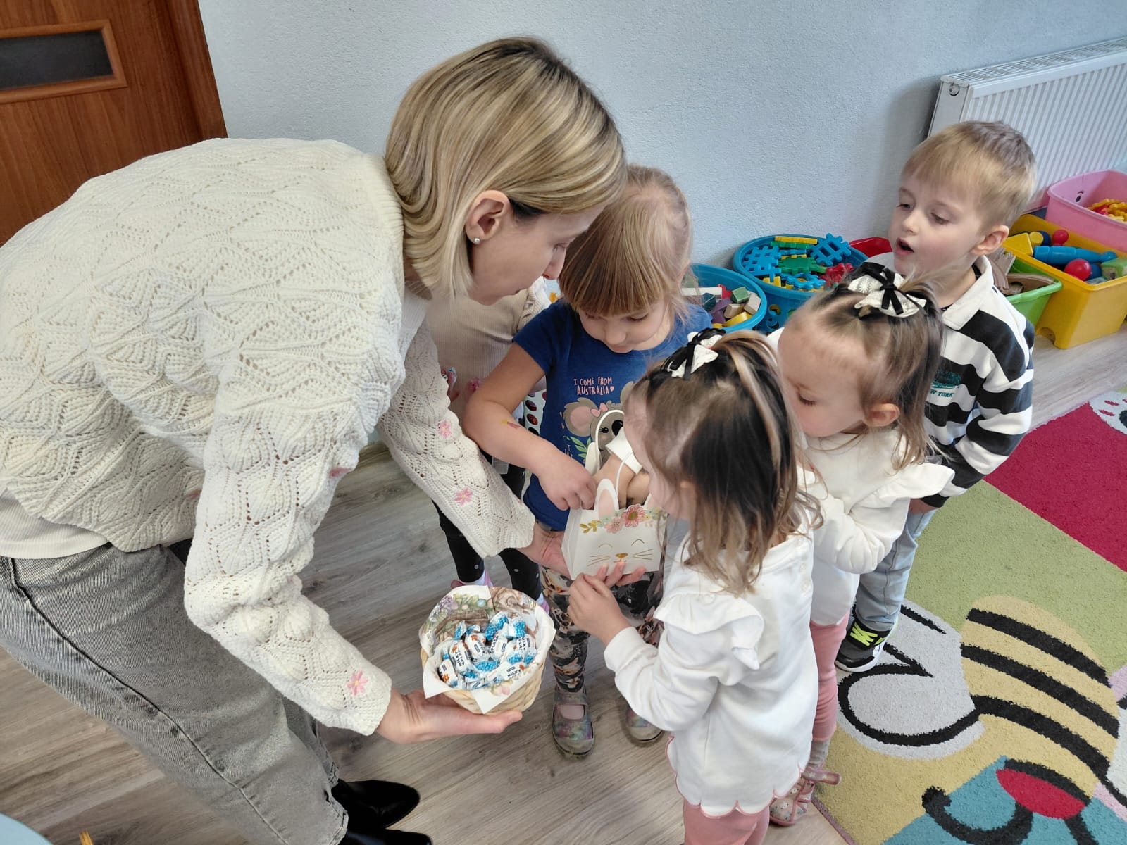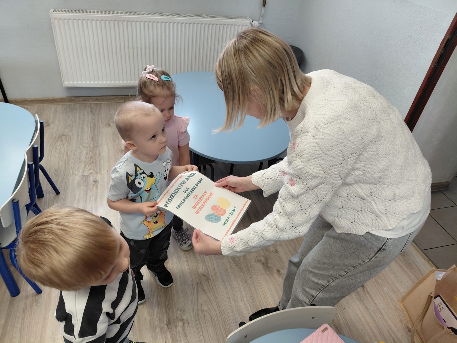 Dziś 1 kwietnia bibliotekarka Filii w Pieczyskach odwiedziła Żabki – grupę przedszkolaków ze Szkoły Podstawowej im. Królowej Jadwigi w Pieczyskach. Święta Wielkanocne są już tak blisko nas, że dzieci oczekują ich już z wielką niecierpliwością. Przede wszystkim czekają oczywiście na… zajączka :) Wielkanocny zajączek był dziś bohaterem czytanych bajek m.in. Urszuli Kozłowskiej oraz przedstawionego teatrzyku kamishibai. Historyjki te stały się wstępem do rozmowy o wielkanocnych tradycjach. W części warsztatowej nasi mali artyści ozdobili kolorowe zajączki oraz przepięknie pokolorowali pisanki. To był czas pełen uśmiechu, który wprowadził nas w radosny nastrój oczekiwania na święta. Dziękuję bardzo za wspólnie spędzone chwile i wszystkim życzę zdrowych, spokojnych i radosnych Świąt Wielkanocnych!