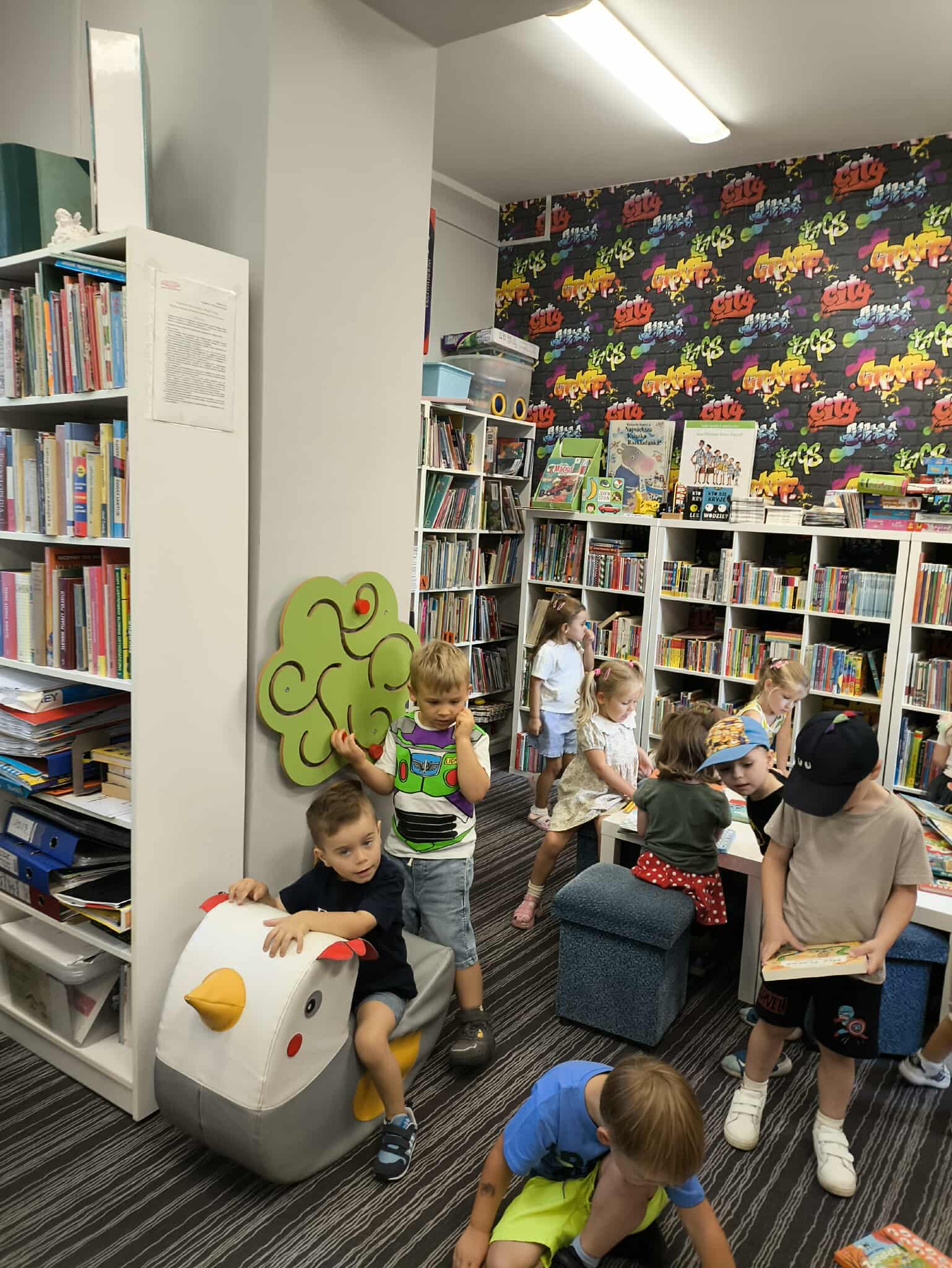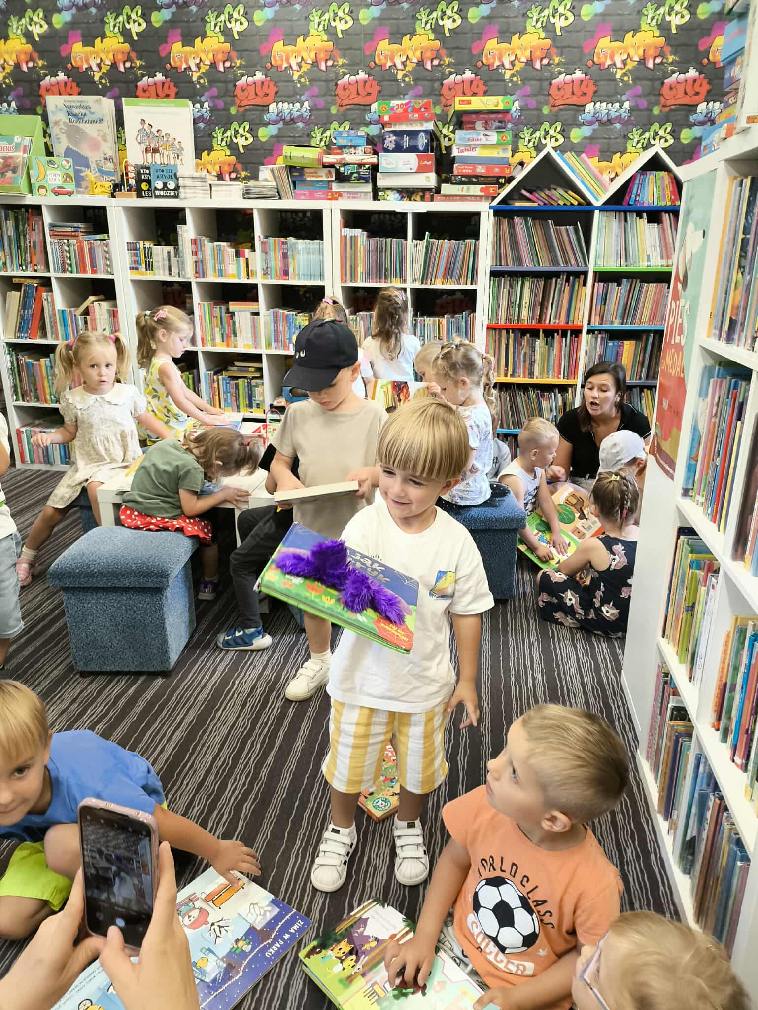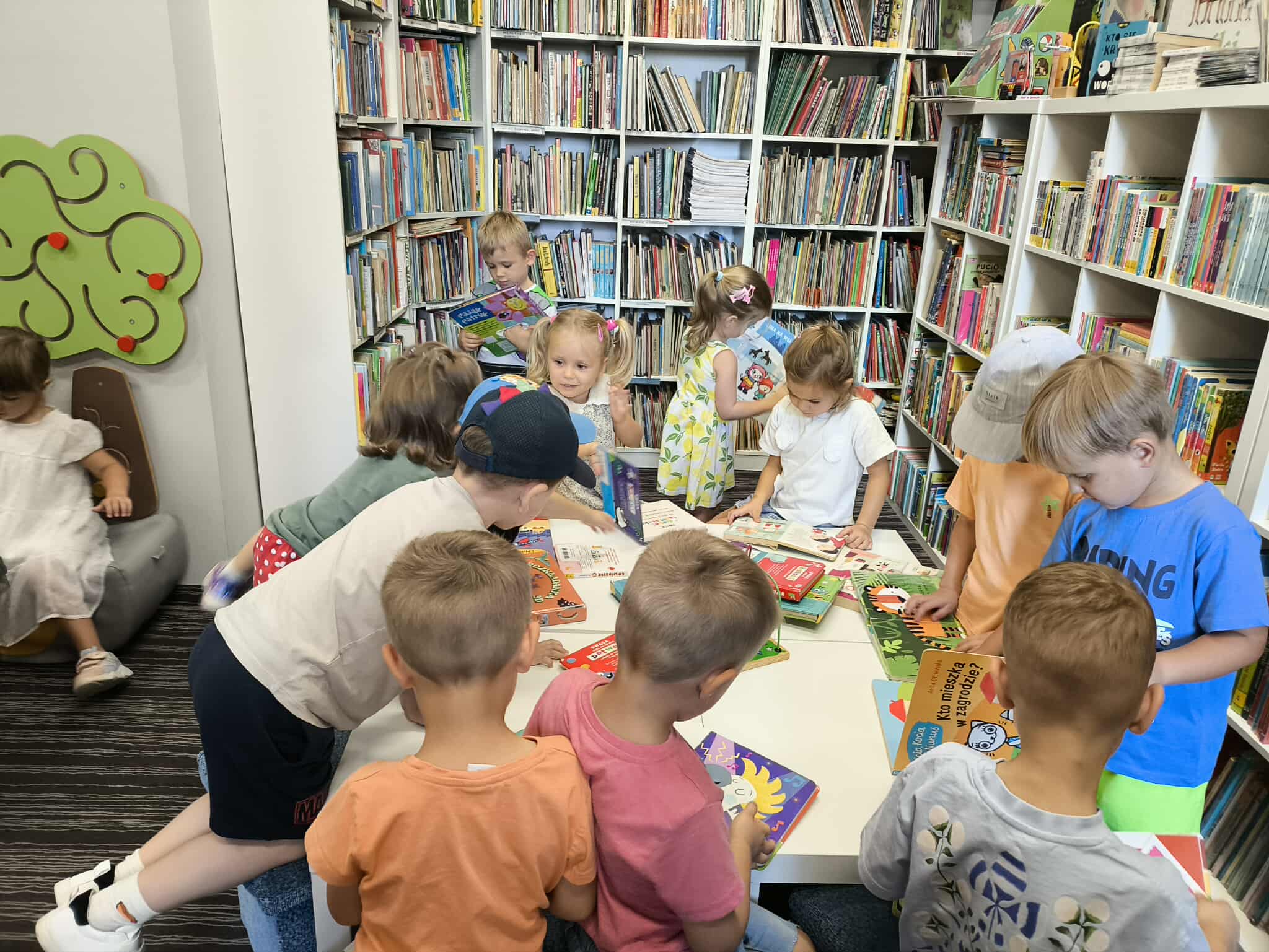 Tak rozpoczął się cykl spotkań z przedszkolakami po wakacyjnej przerwie. Dziś odwiedziły nas Motylki z Przedszkola nr 1 im. K Bezena. Trochę czytaliśmy, trochę oglądaliśmy książeczki i dzieci poznały zasady korzystania z księgozbioru.