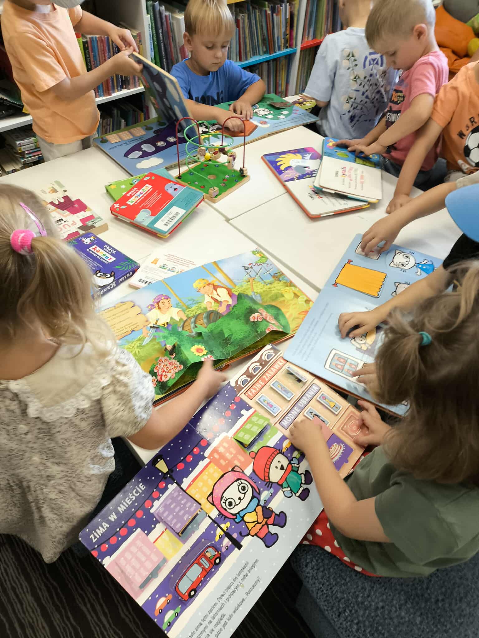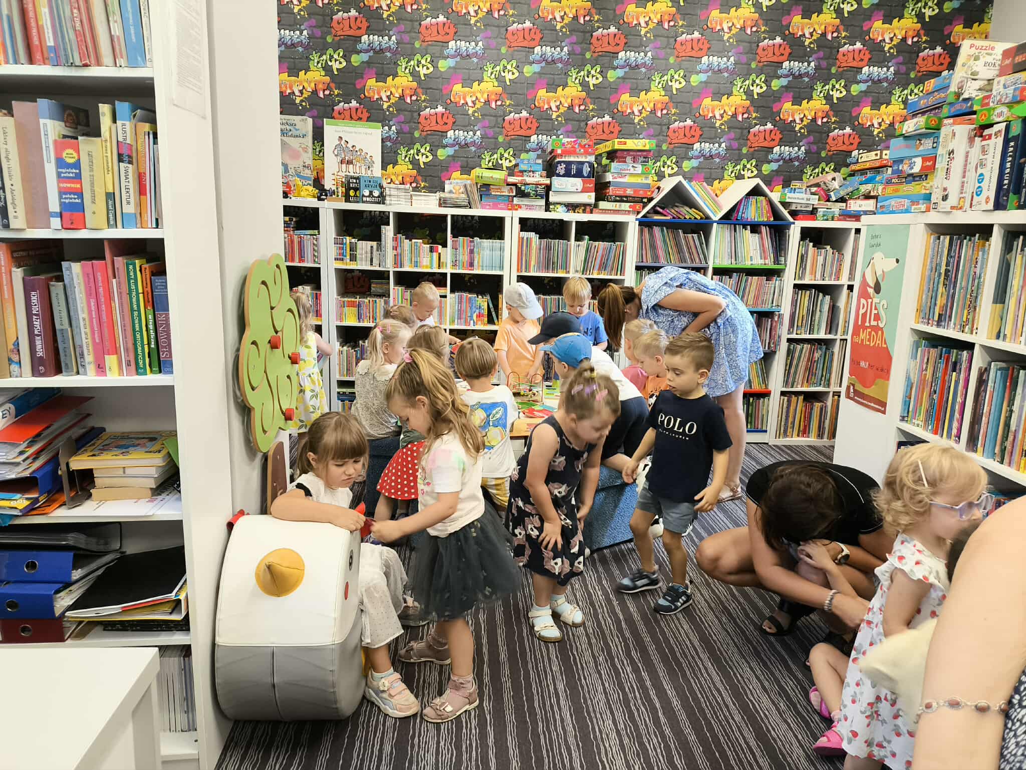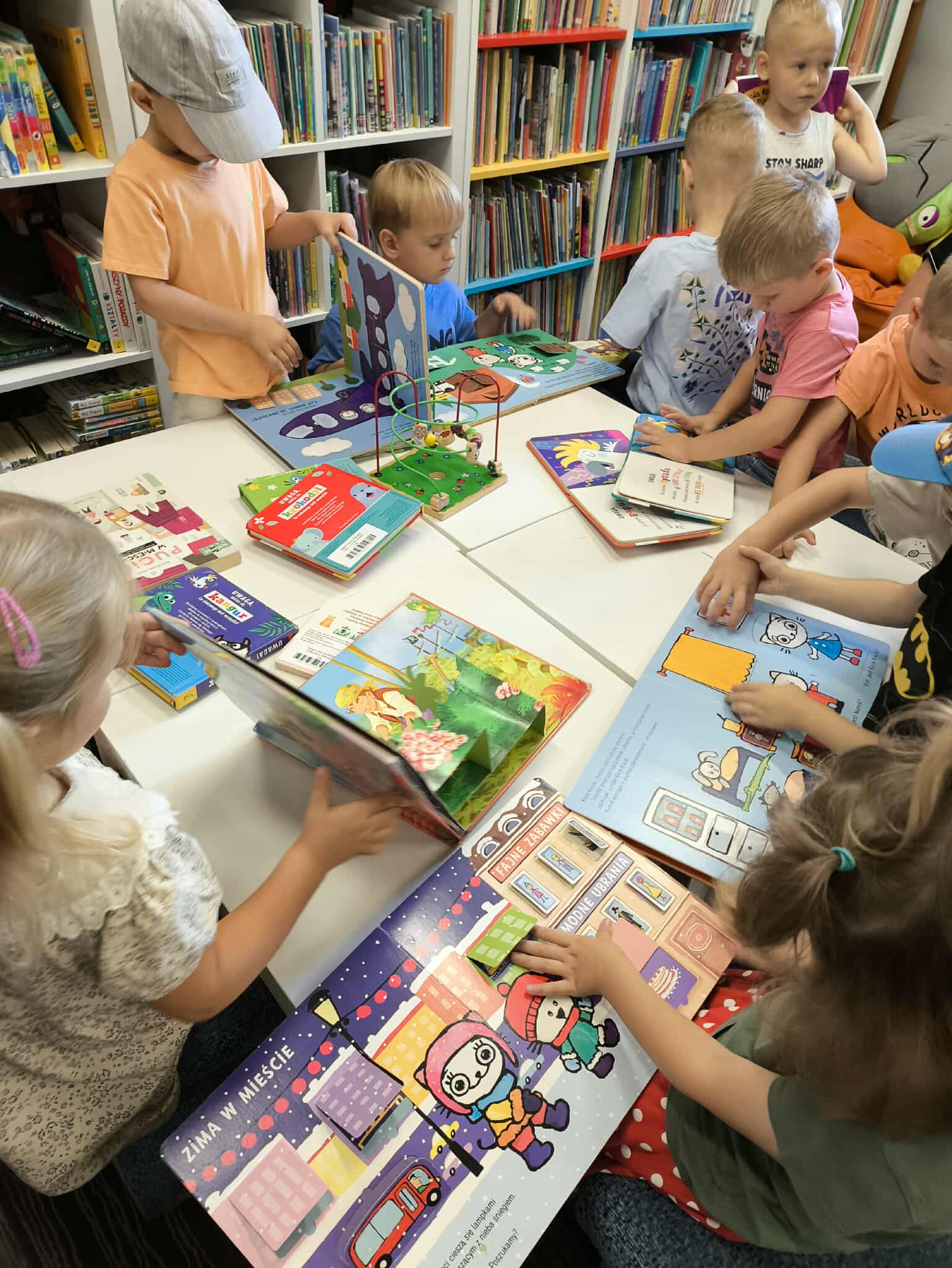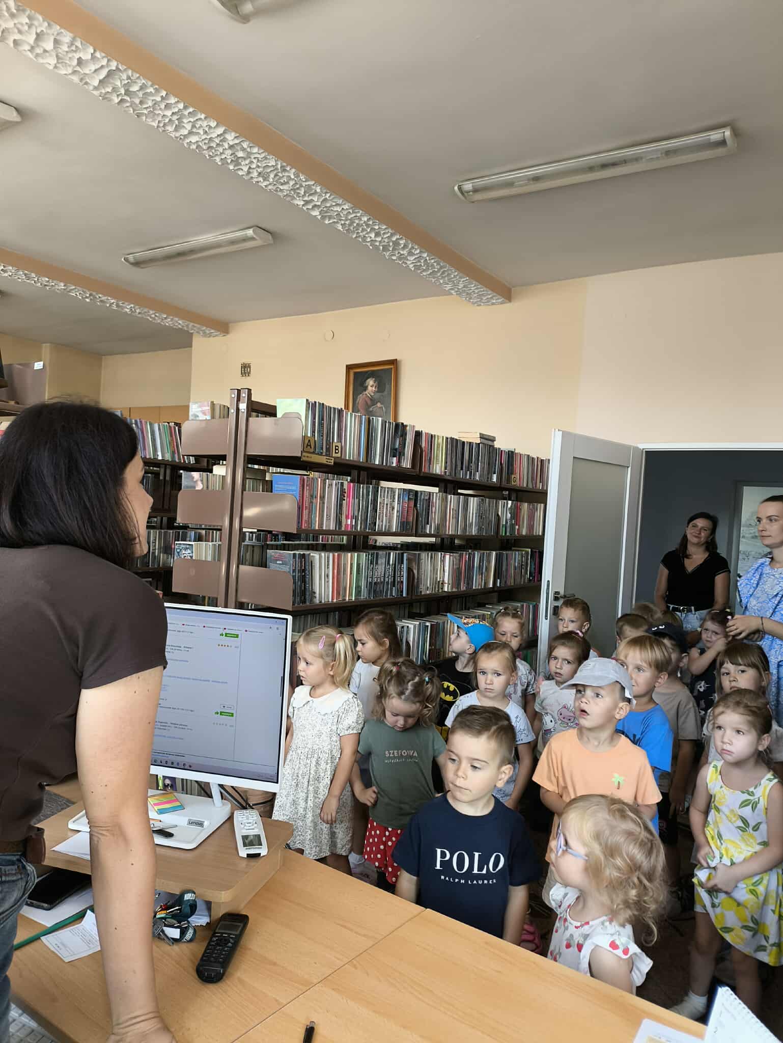 Tak rozpoczął się cykl spotkań z przedszkolakami po wakacyjnej przerwie. Dziś odwiedziły nas Motylki z Przedszkola nr 1 im. K Bezena. Trochę czytaliśmy, trochę oglądaliśmy książeczki i dzieci poznały zasady korzystania z księgozbioru.