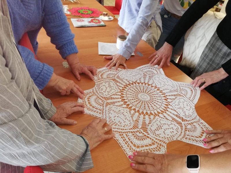 Kolejne spotkanie Klubu Robótek Ręcznych zwanego potocznie Grupą Szydełkową :) w Filii Bibliotecznej nr 3 obfitowało w piękne serwety. Panie przyniosły zrobione przez siebie dzieła, żeby powymieniać się wzorami i usłyszeć trochę słów uznania od innych uczestniczek. Nikt tak nie potrafi dopingować jak koleżanki, które wiedza ile trzeba włożyć pracy w takie serwetki. Oprócz szydełka Panie robią makramę i wyszywają haftem krzyżykowym. Są też śmiałkinie, które potrafią zrobić serwetę techniką frywolitkową, ale to już wyższa „szkoła robótkowej jazdy”. Każda robi to, co lubi i potrafi.