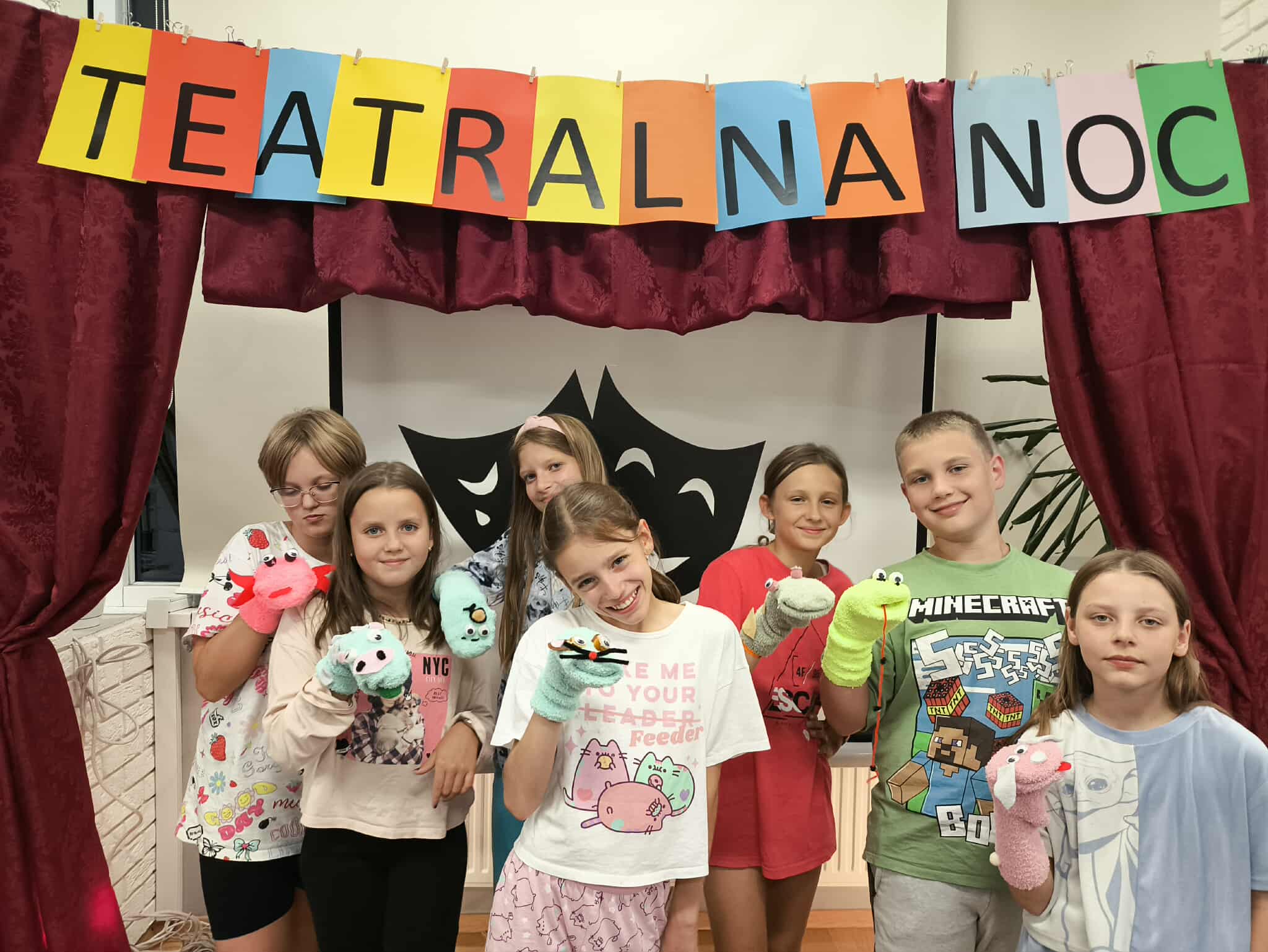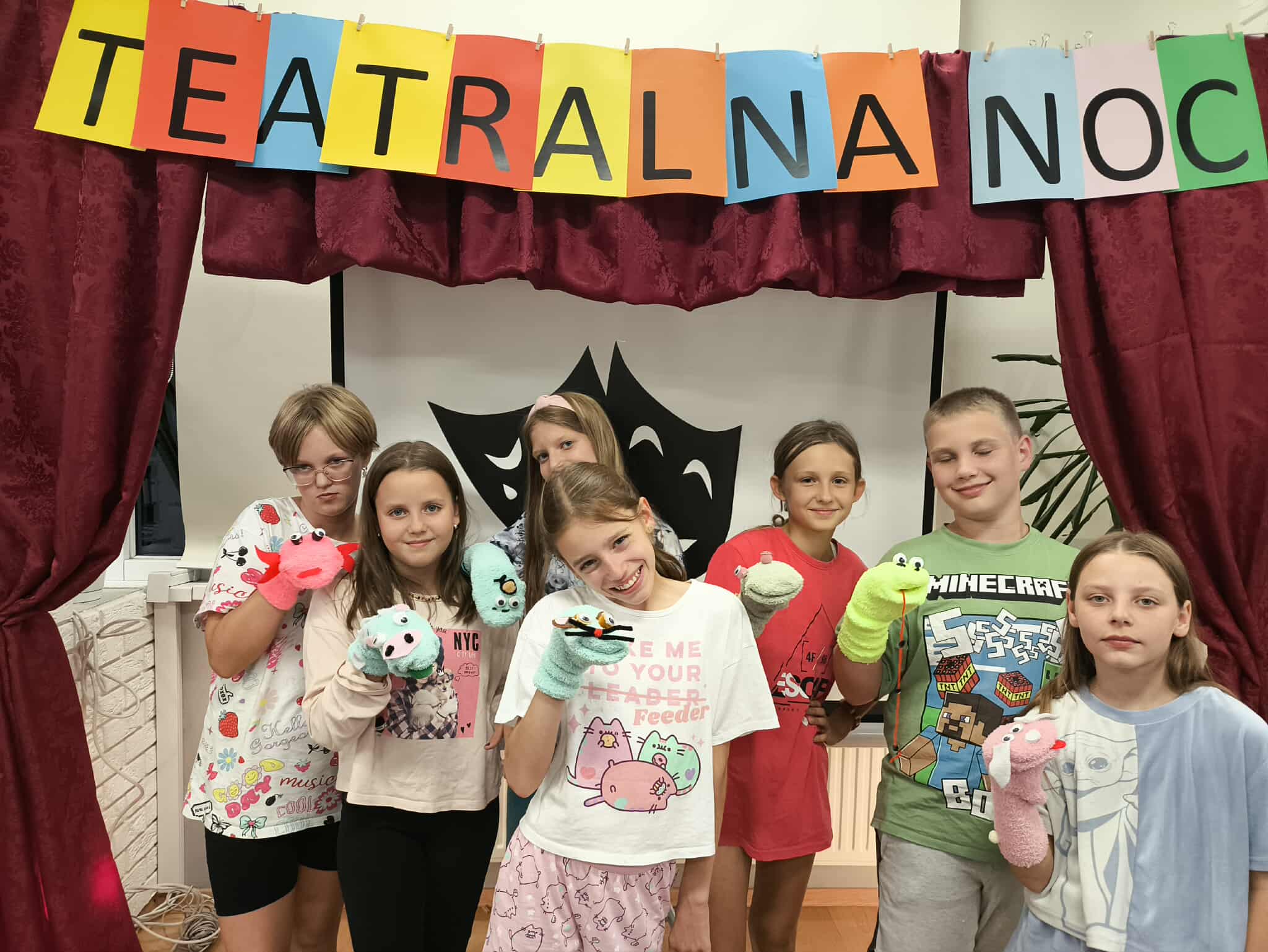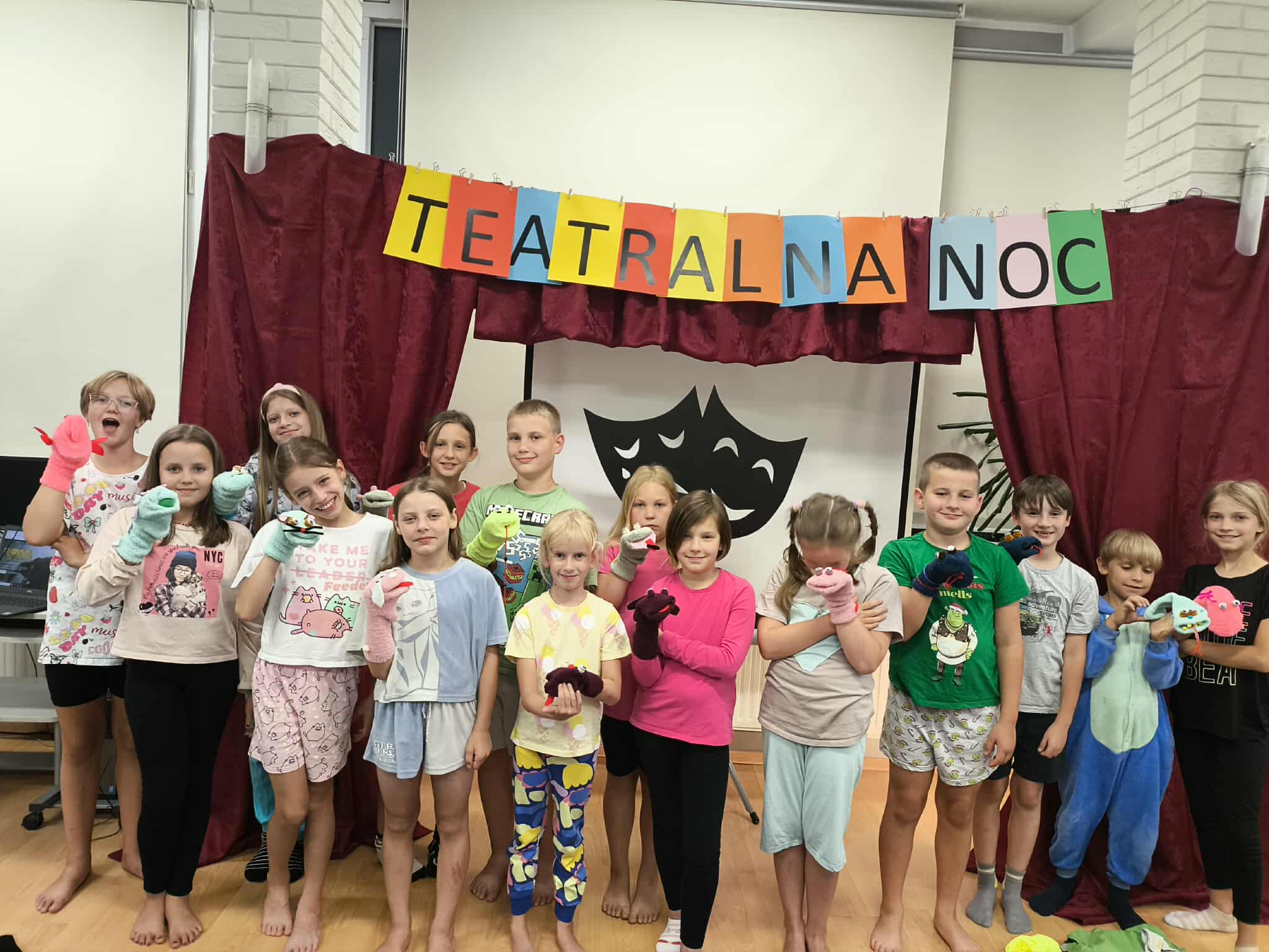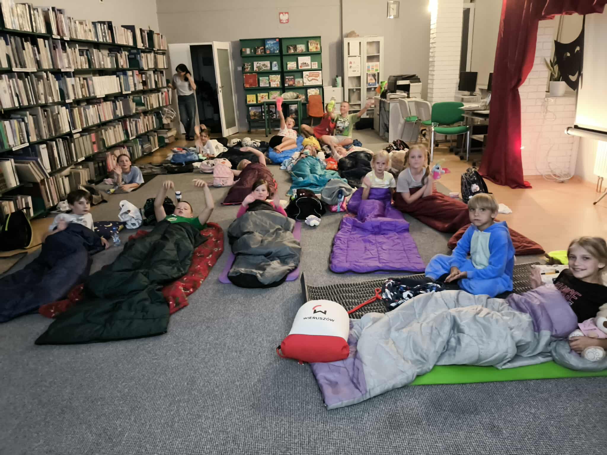 20/21sierpnia w Miejsko-Gminnej Bibliotece Publicznej w Wieruszowie po raz 9 odbyła się noc w bibliotece. Tym razem teatr odgrywał główną rolę. Teatralna noc rozpoczęła się o godz. 17:00 spektaklem pt. „Trzy świnki” w wykonaniu Ogólnopolskiego Teatru William-Es. Po przedstawieniu 15 osobowa grupa dziecięca miała możliwość uczestniczenia w warsztatach teatralnych prowadzonych przez aktorów ww. teatru. Dzięki tym zajęciom uczestnicy zajęć rozwijali swoje umiejętności związane z aktorstwem. Pod okiem doświadczonych instruktorów rozwijali swoją wyobraźnię oraz pracowali z tekstem i ruchem scenicznym. Z naszych obserwacji śmiemy stwierdzić, że dzięki tym zajęciom wiele dzieci przełamało swoje lęki i nieśmiałość oraz obudziło w nich poczucie własnej wartości i pewność siebie. Nocny spacer i kolacja w pizzerii szybko zintegrowała grupę. Po powrocie do biblioteki dzieci z pomocą bibliotekarek wykonały pacynki z skarpetek. Około godz. 23 dzieci zmęczone ale szczęśliwe słuchając bajki mogły wreszcie ułożyć się do snu. A czy zasnęły??? Nocne szepty ucichły po północy. Rankiem dzieci zjadły śniadanko i otrzymały pamiątkowe dyplomy oraz upominki z Gminy Wieruszów. Taka noc w bibliotece jest tylko raz w roku, ale kto w niej uczestniczy ten zapamięta ją na długo.