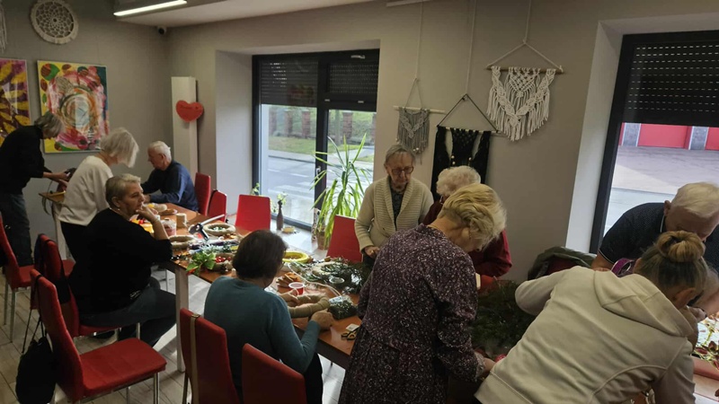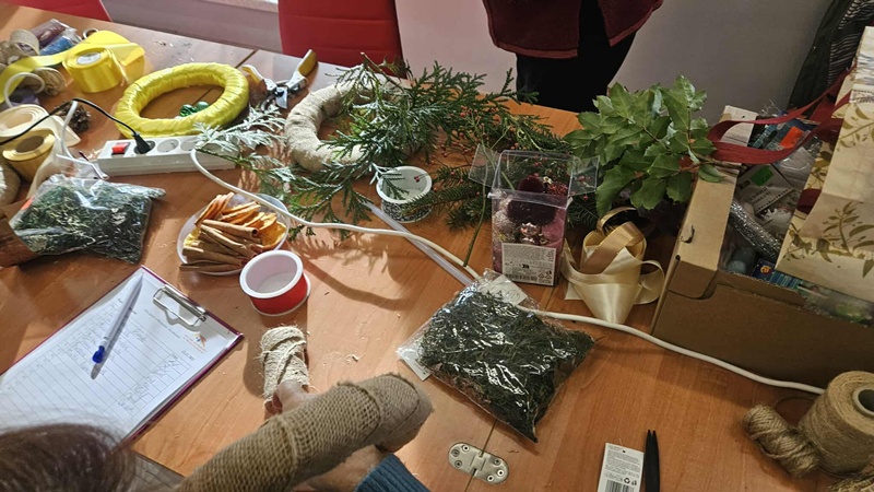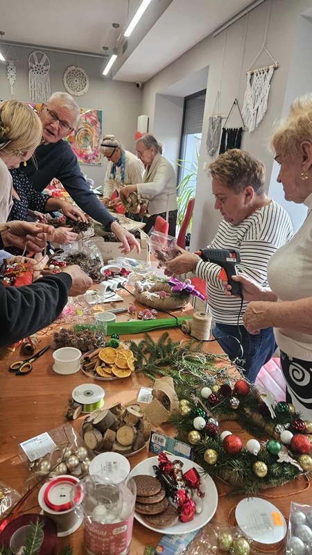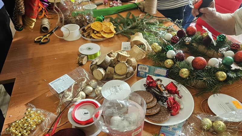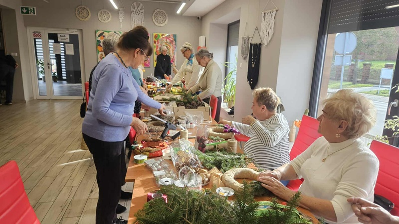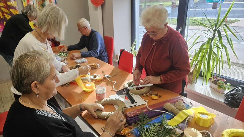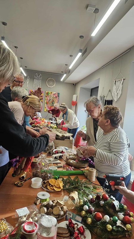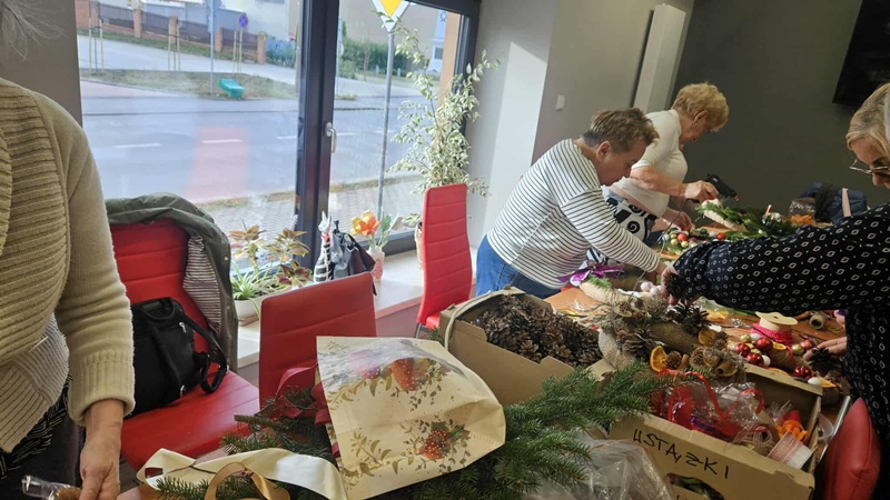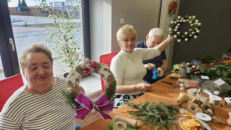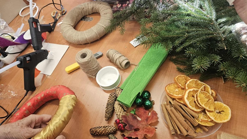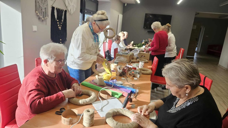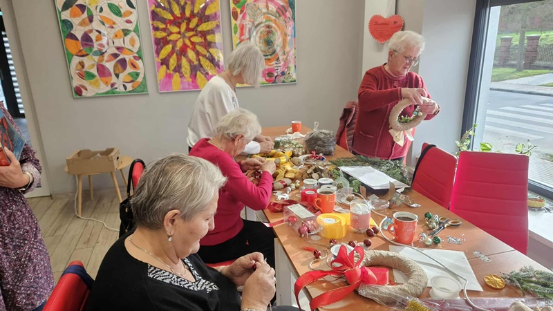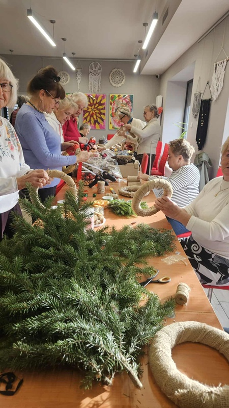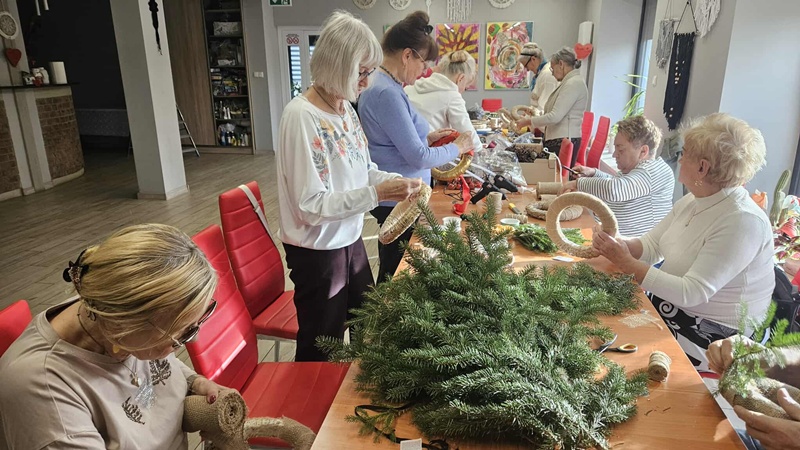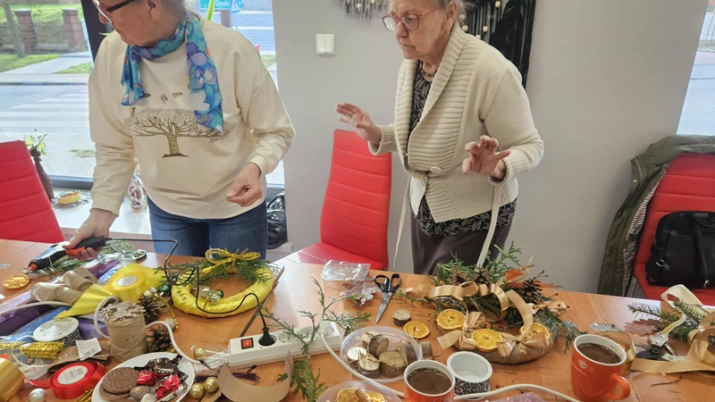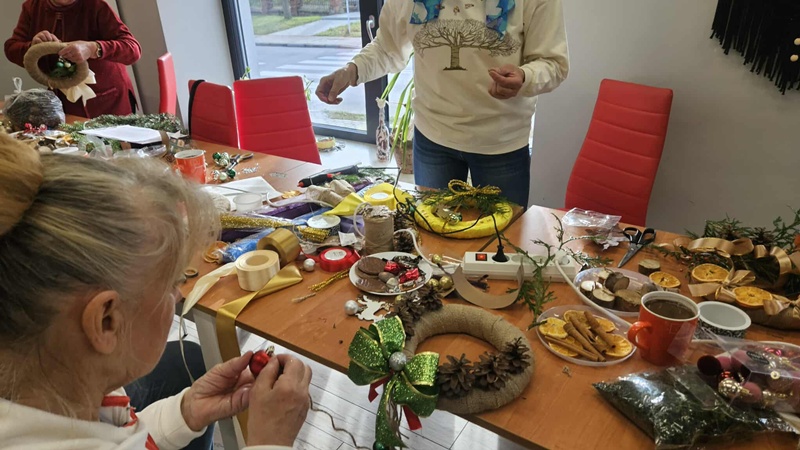 13-11-2025 w Filii Bibliotecznej nr 3 odbyło się kolejne spotkanie w ramach cyklicznych zajęć artystycznych dla Seniorów. Ponieważ święta zbliżają się wielkimi krokami postanowiliśmy już zacząć przygotowania i zrobić bożonarodzeniowe wianki na drzwi lub ścianę. Zajęciom towarzyszył duży entuzjazm i radość tworzenia a także zapach zielonego świerku, który przyniósł jeden z uczestników. Można było poczuć małą magię, każdy pochłonięty swoim pomysłem na wianek. Czas minął bardzo szybko. Powstały piękne prace.